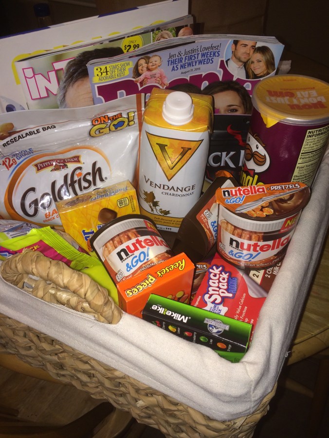 I did take time out to enjoy dinner and great conversation with 2 of my favorite girlfriends, Tara and Stacy. We had awesome food at BJs, and we were able to catch up on the last 2 months of our lives. The girls bought dinner and gave me an amazing goody basket for the trip!